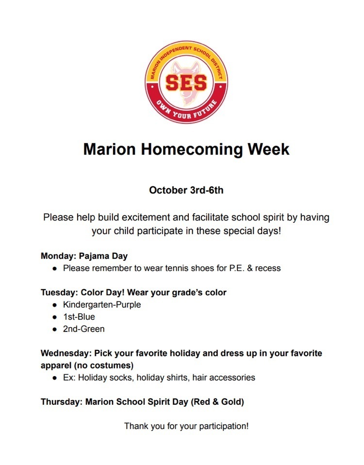 Due to the weather, Marion ISD will be running a 2 hour EARLY DISMISSAL today, March 9th. No evening activities, no PM preschool.